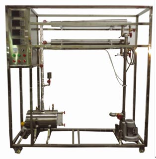 套管換熱器、蒸汽發(fā)生器、氣泵、熱電偶、數(shù)顯儀表、壓力表、熱球風速儀或轉(zhuǎn)子流量計、實驗管道、閥門、不銹鋼框架、控制屏。